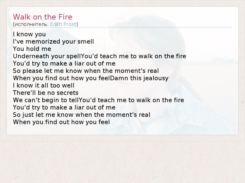 А как ты думаешь, о чем песня "Walk on the Fire" ?