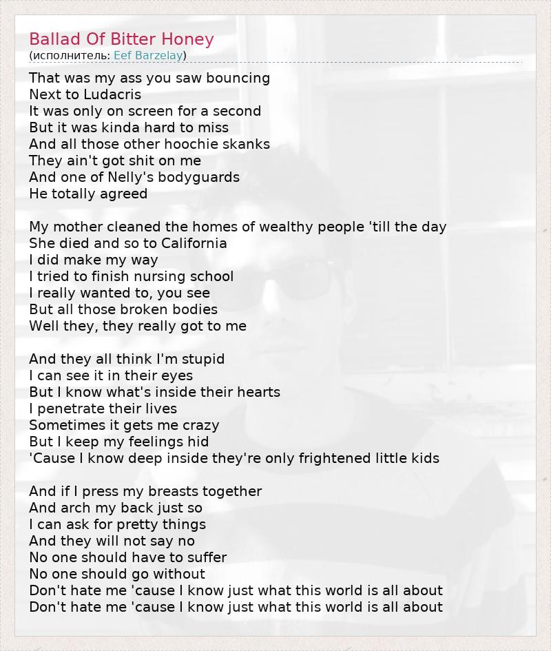 А как ты думаешь, о чем песня "Ballad Of Bitter Honey" ?