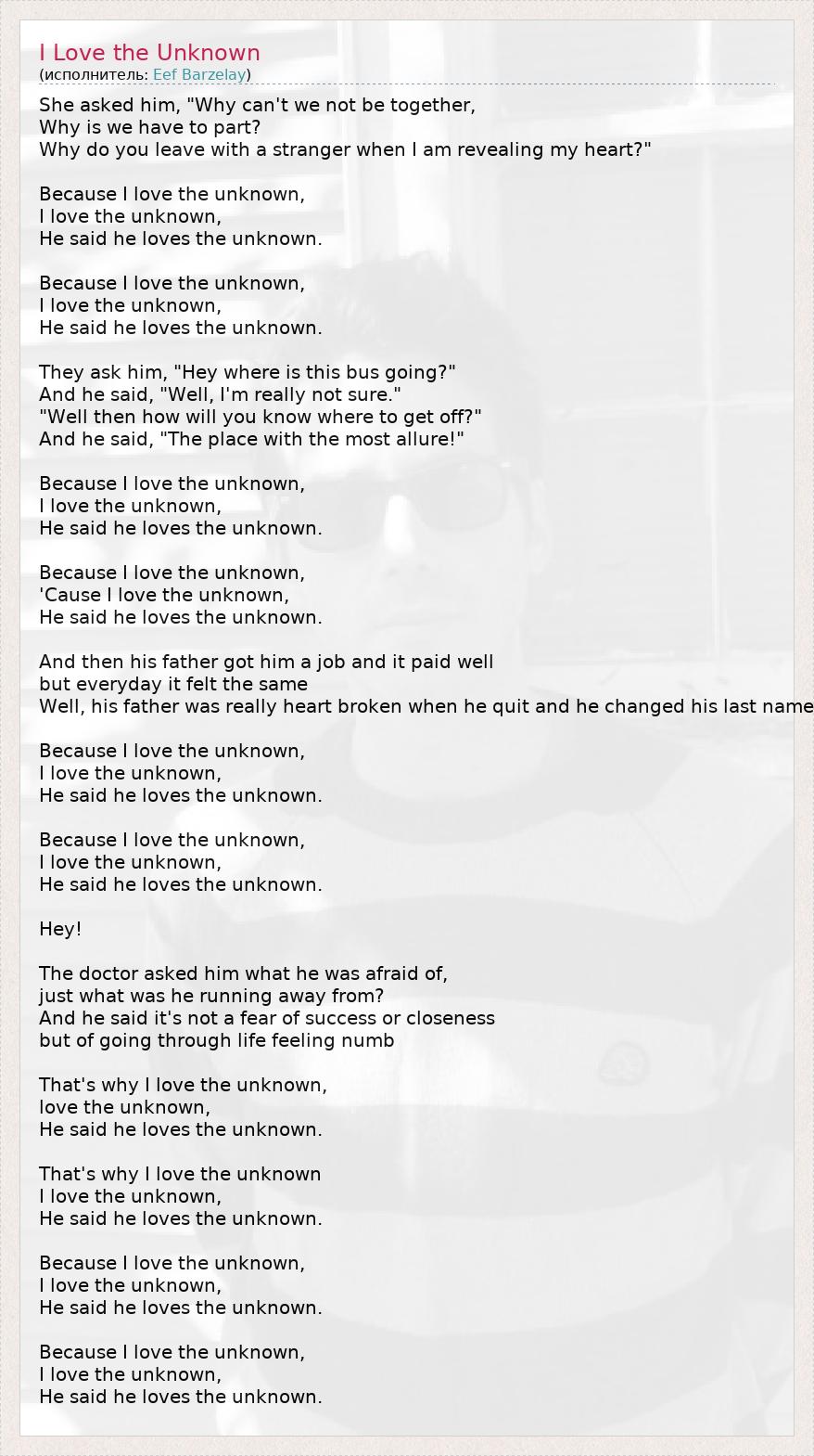 А как ты думаешь, о чем песня "I Love the Unknown" ?