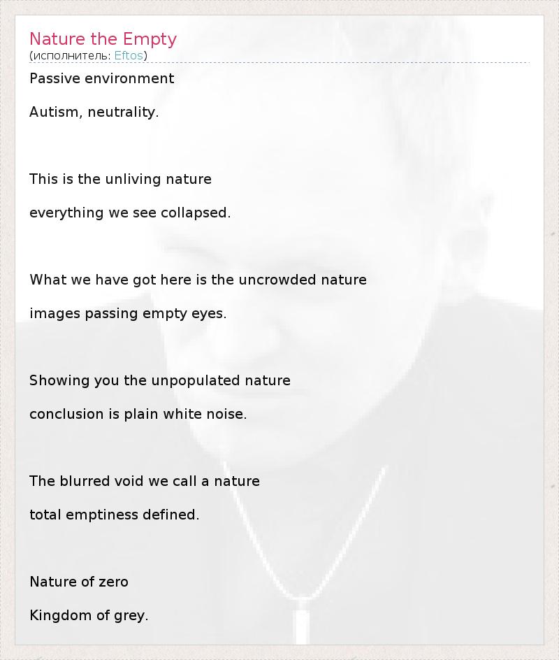 А как ты думаешь, о чем песня "Nature the Empty" ?