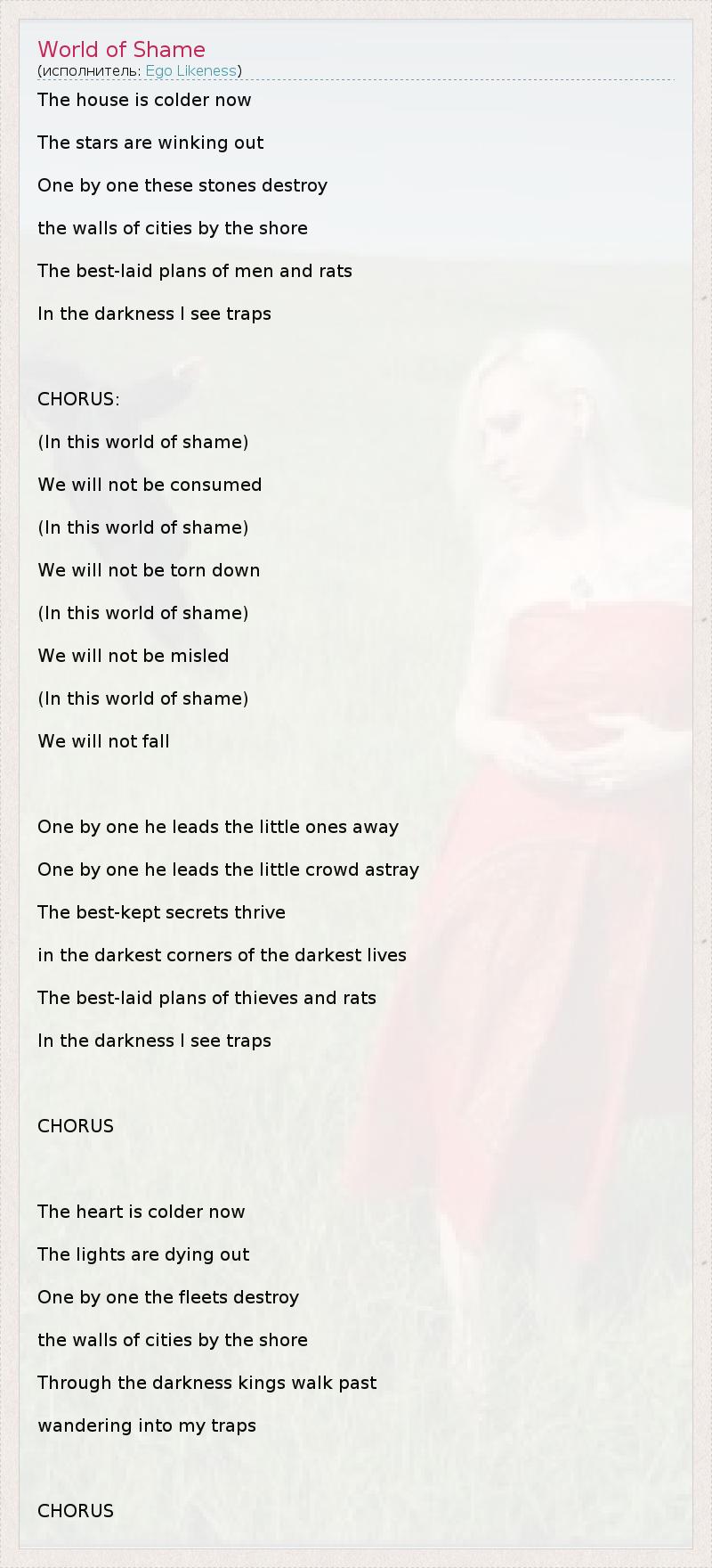 А как ты думаешь, о чем песня "World of Shame" ?