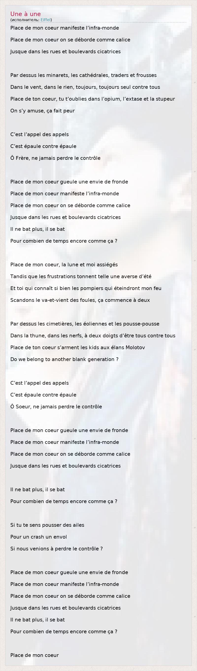 А как ты думаешь, о чем песня "Une à une" ?