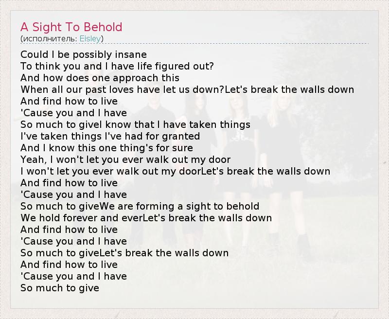 А как ты думаешь, о чем песня "A Sight To Behold" ?