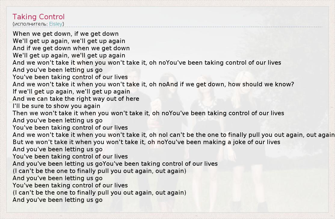 А как ты думаешь, о чем песня "Taking Control" ?