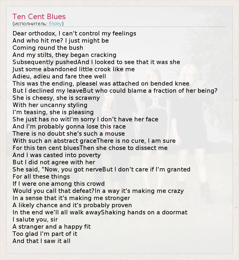А как ты думаешь, о чем песня "Ten Cent Blues" ?