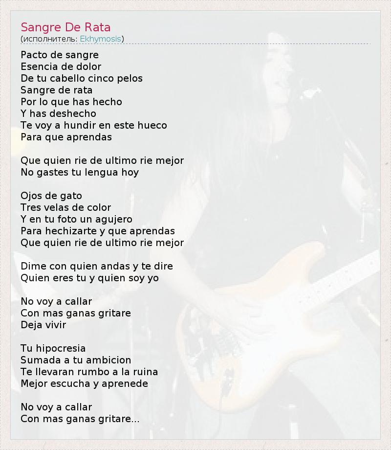 А как ты думаешь, о чем песня "Sangre De Rata" ?