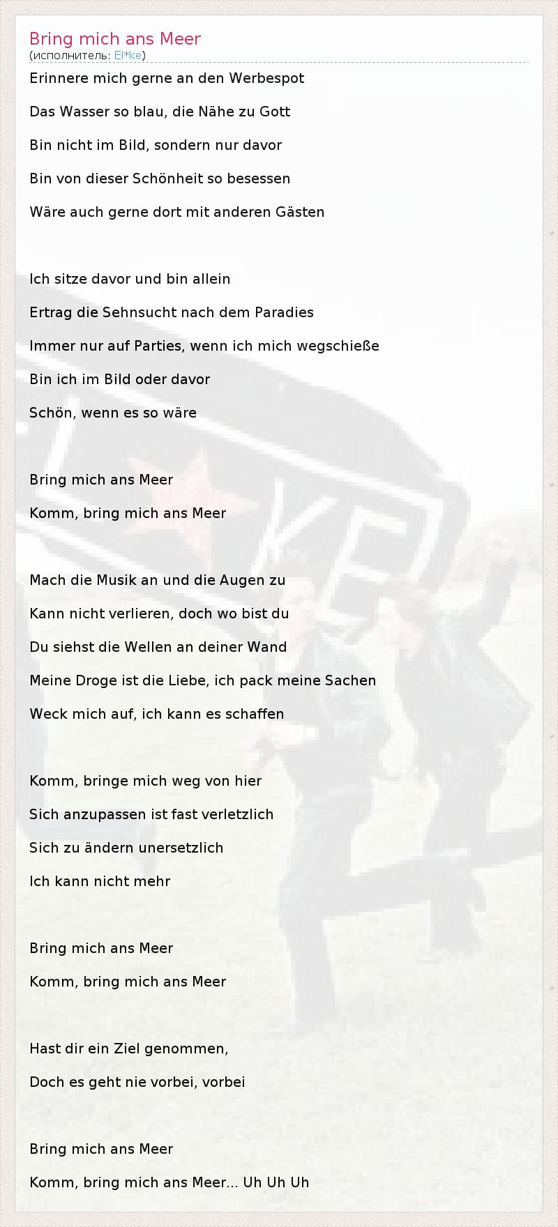 А как ты думаешь, о чем песня "Bring mich ans Meer" ?