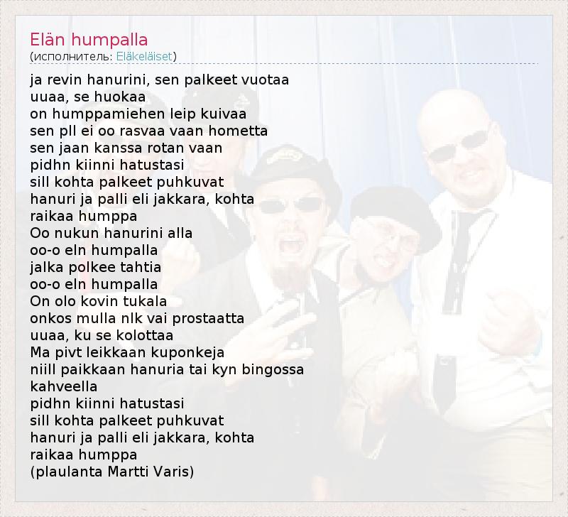 А как ты думаешь, о чем песня "Elän humpalla" ?