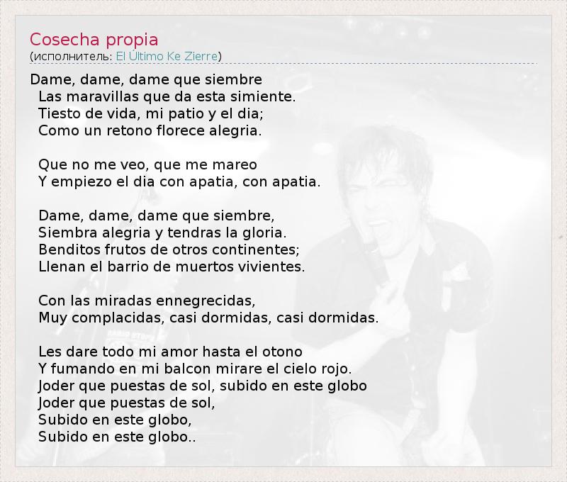 А как ты думаешь, о чем песня "Cosecha propia" ?