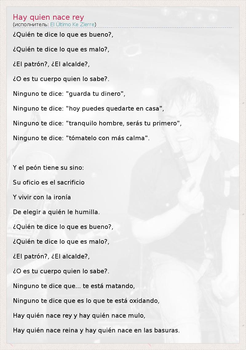 А как ты думаешь, о чем песня "Hay quien nace rey" ?