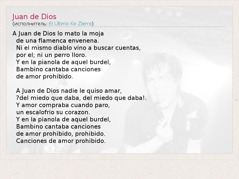 А как ты думаешь, о чем песня "Juan de Dios" ?