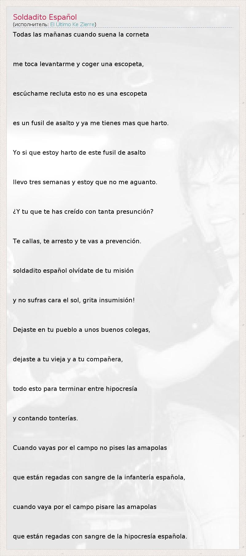 А как ты думаешь, о чем песня "Soldadito Español" ?