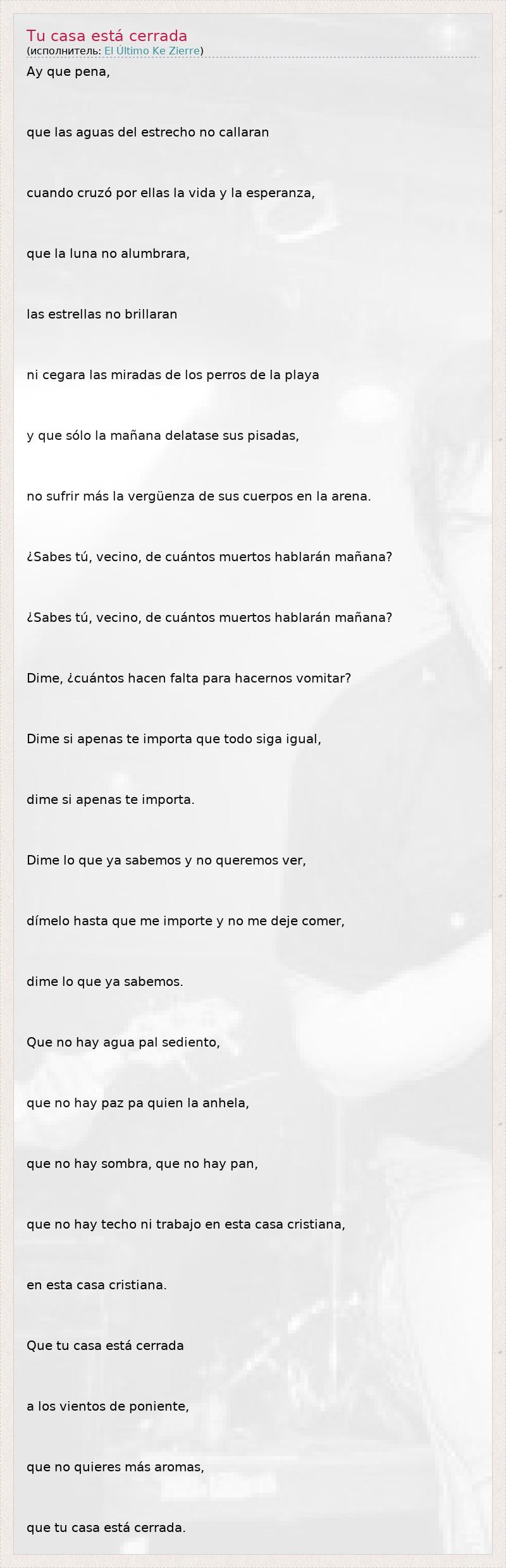 А как ты думаешь, о чем песня "Tu casa está cerrada" ?