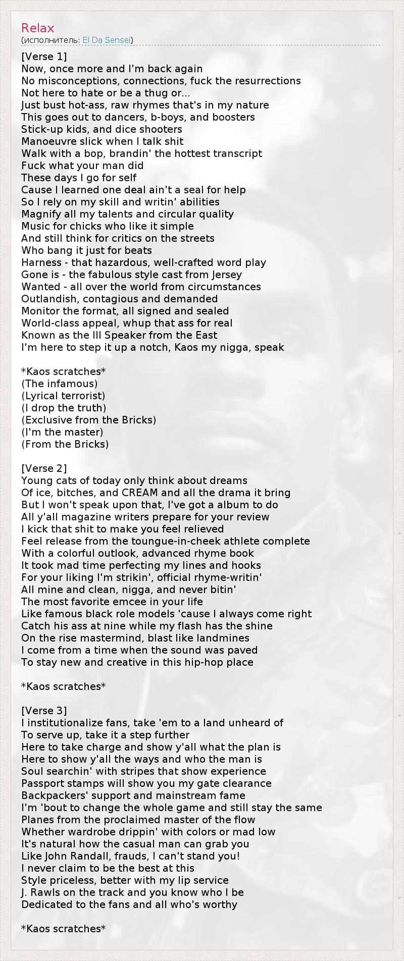 I kick that shit to make you feel relieved