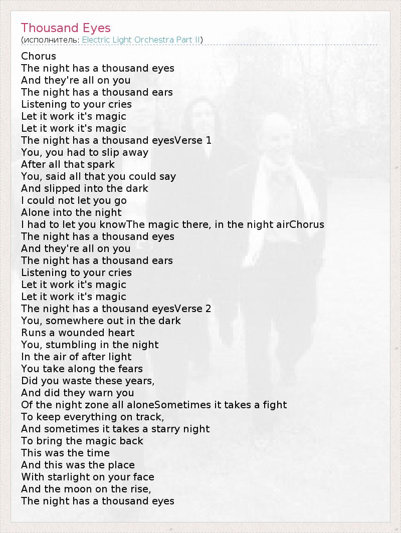 А как ты думаешь, о чем песня "Thousand Eyes" ?