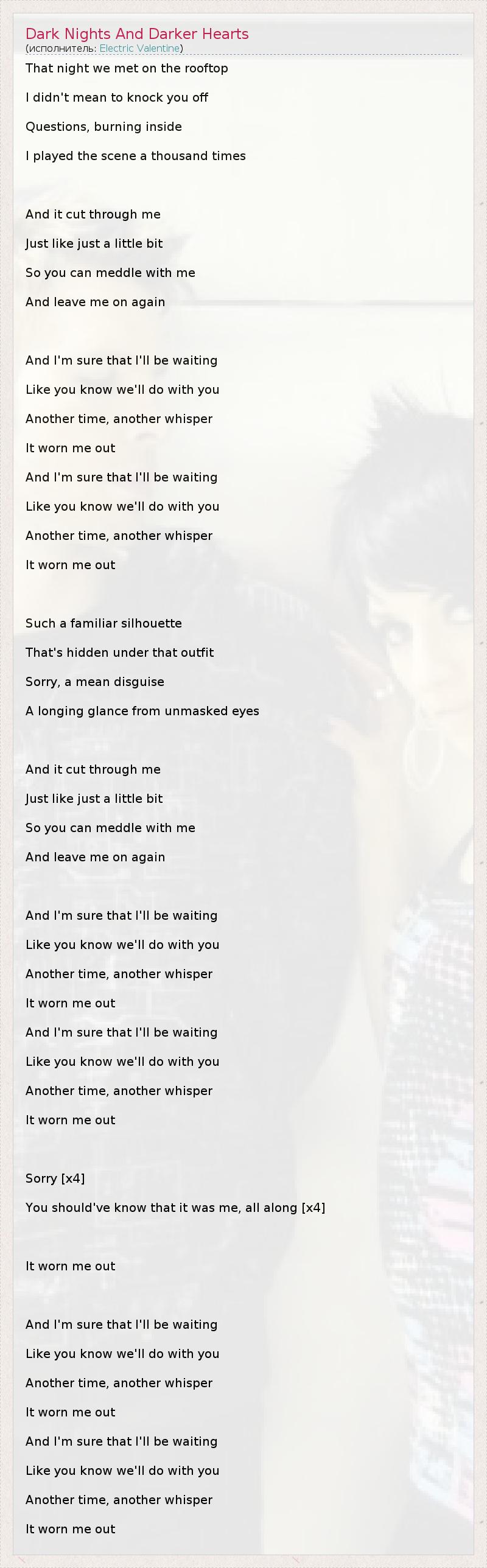 А как ты думаешь, о чем песня "Dark Nights And Darker Hearts" ?