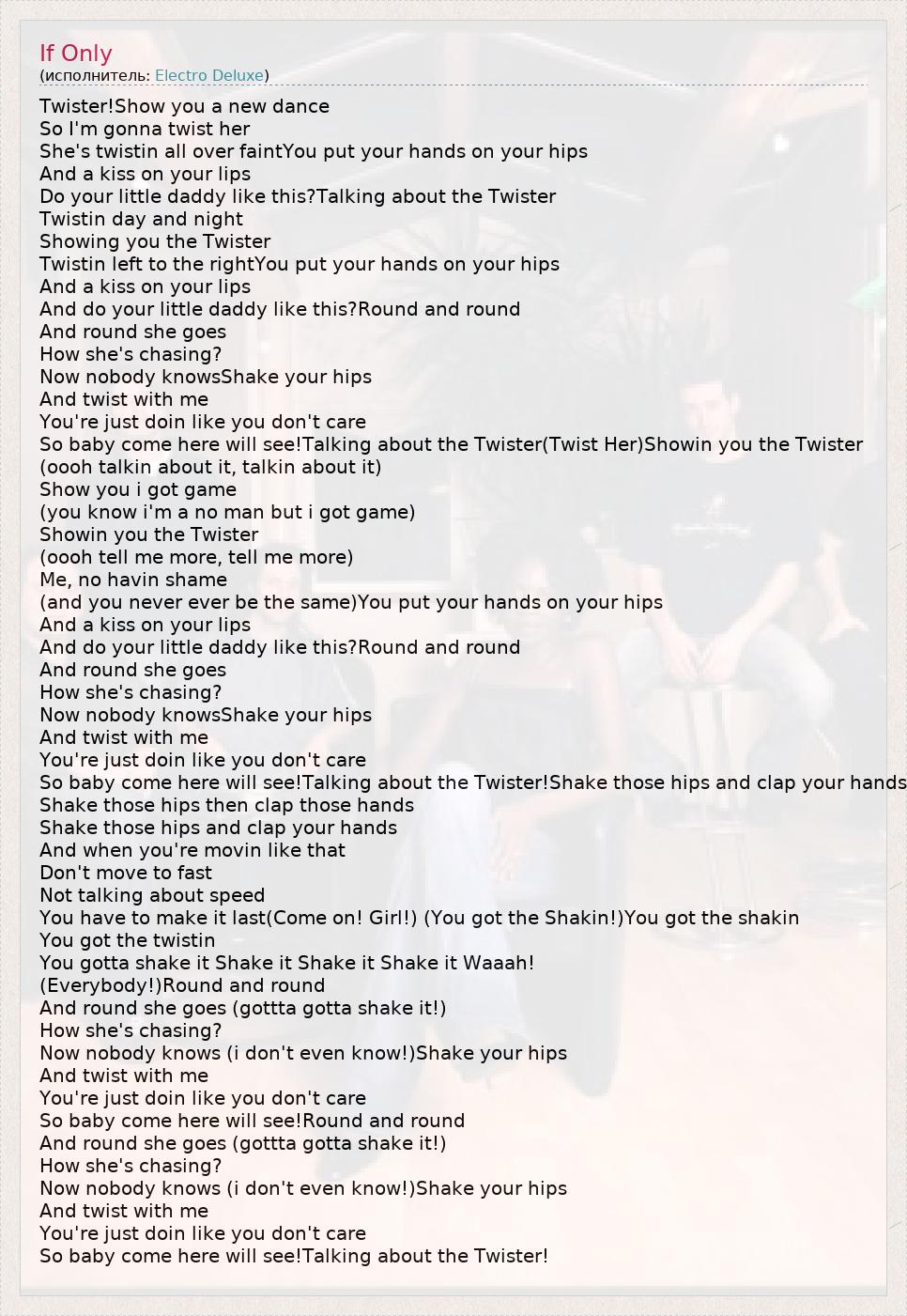 So baby come here will see!Talking about the Twister!Shake those hips and clap your hands