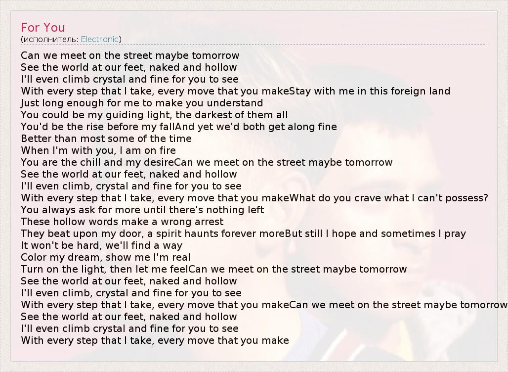 With every step that I take, every move that you makeCan we meet on the street maybe tomorrow