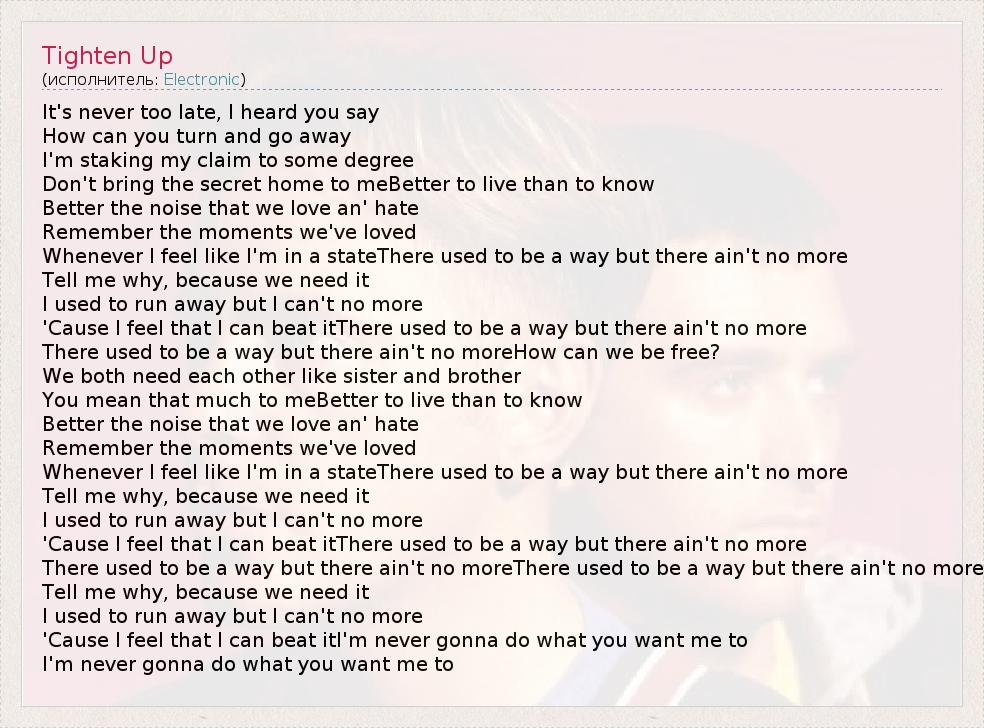 А как ты думаешь, о чем песня "Tighten Up" ?