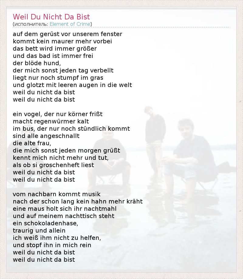 А как ты думаешь, о чем песня "Weil Du Nicht Da Bist" ?