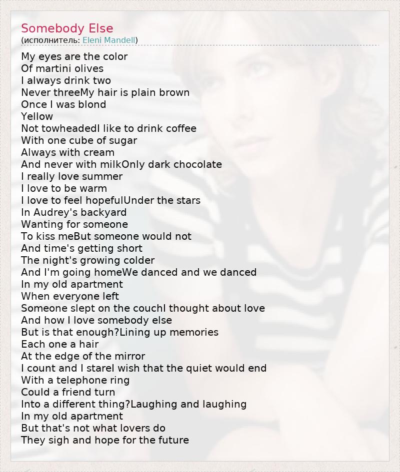 А как ты думаешь, о чем песня "Somebody Else" ?