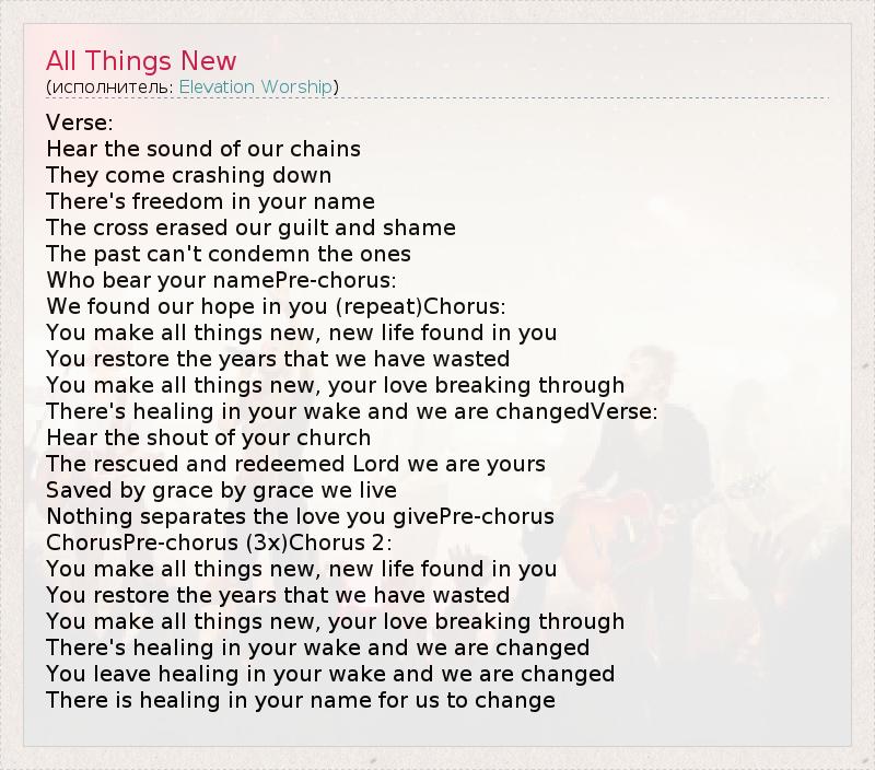 А как ты думаешь, о чем песня "All Things New" ?