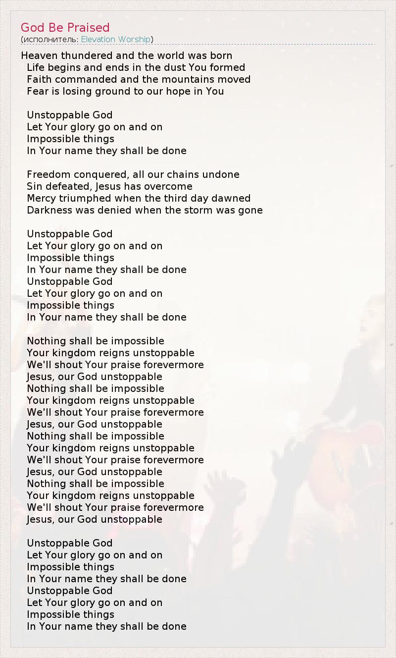 А как ты думаешь, о чем песня "God Be Praised" ?