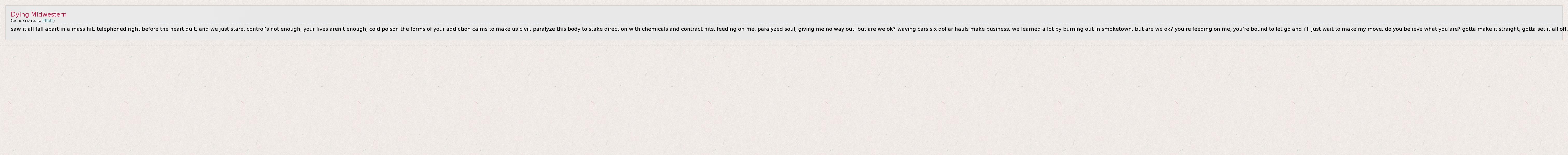 А как ты думаешь, о чем песня "Dying Midwestern" ?