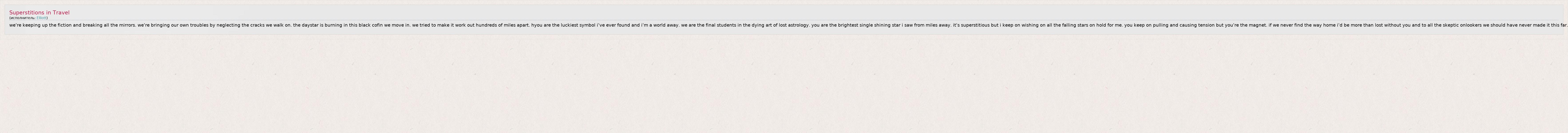 А как ты думаешь, о чем песня "Superstitions in Travel" ?