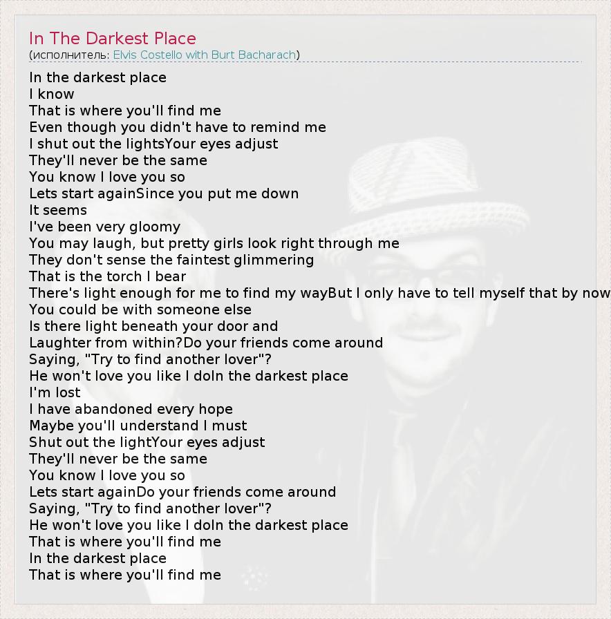 А как ты думаешь, о чем песня "In The Darkest Place" ?