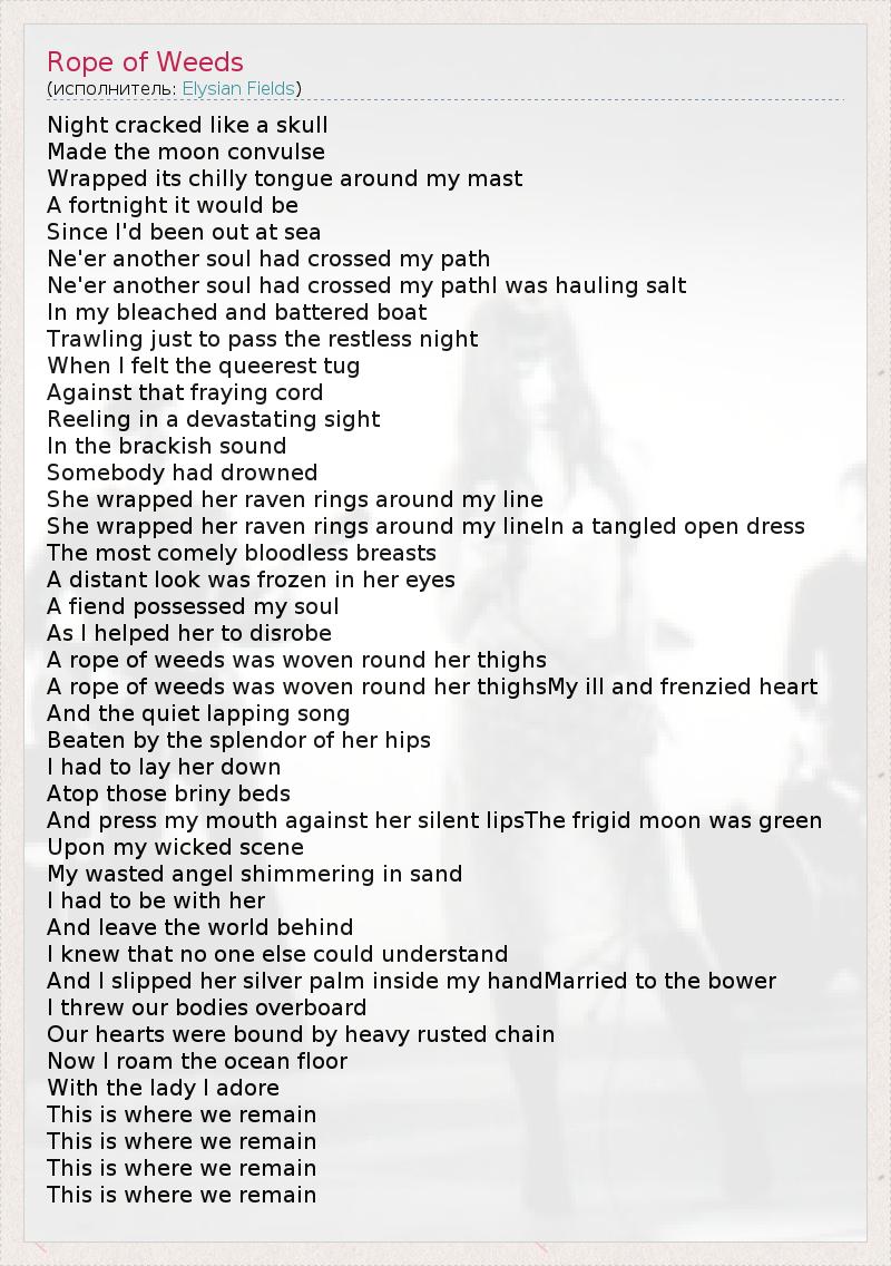 А как ты думаешь, о чем песня "Rope of Weeds" ?