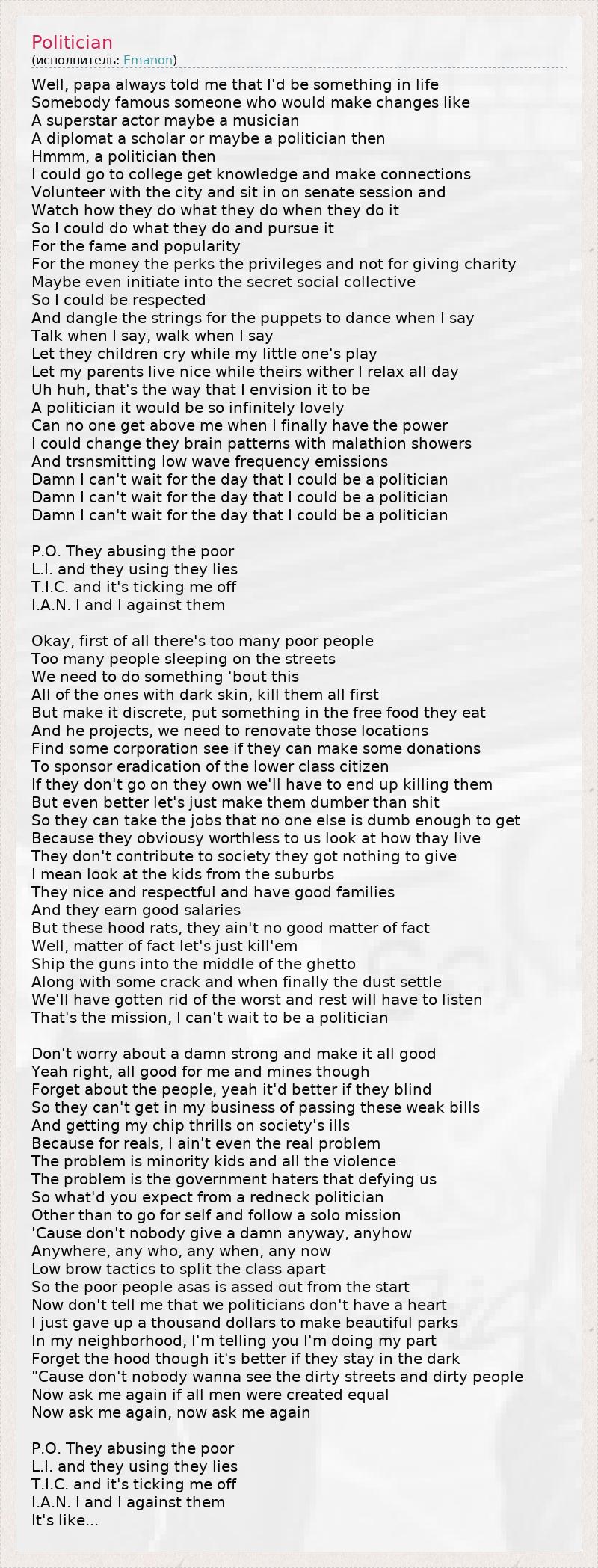 А как ты думаешь, о чем песня "Politician" ?