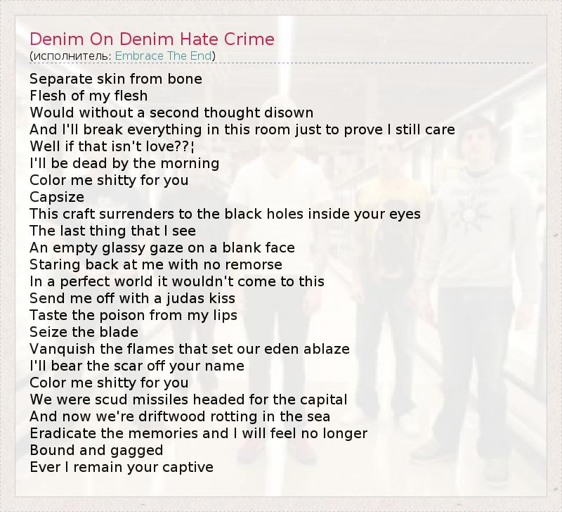 А как ты думаешь, о чем песня "Denim On Denim Hate Crime" ?