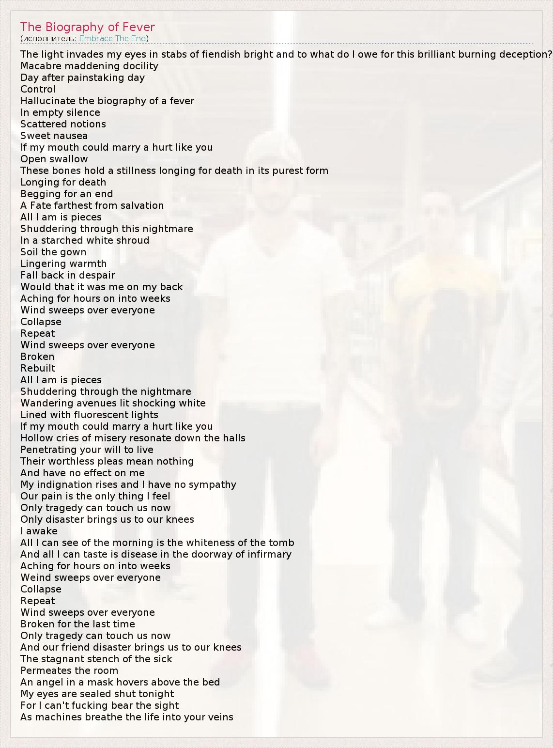 А как ты думаешь, о чем песня "The Biography of Fever" ?