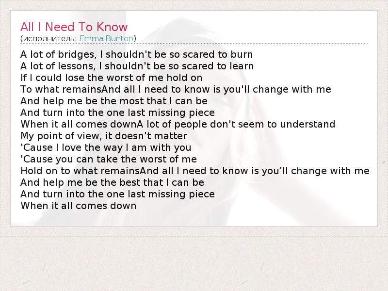 А как ты думаешь, о чем песня "All I Need To Know" ?