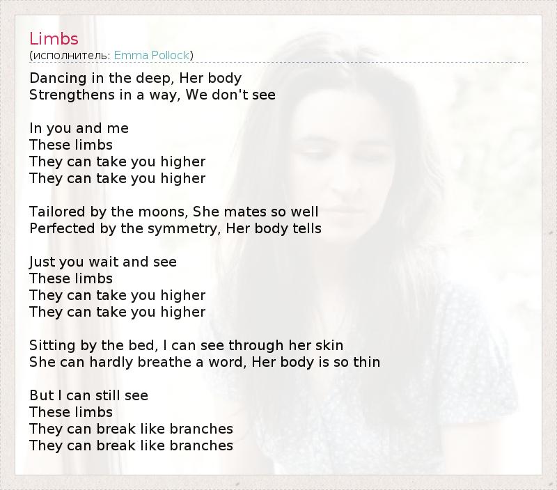 Это интересно:Emma Pollock (Эмма Поллок) -певица, композитор и гитарист из Шотландии. Она была основателем шотландской группы The Delgados. Она подписала одиночный контракт на запись с лейблом 4AD в 2005 после того, как The Delgados распались. Её первый сольный альбом, Watch The Fireworks, был выпущен 17-го Сентября 2007.Она по-прежнему работает с лейблом из Глазго, Chemikal Underground.