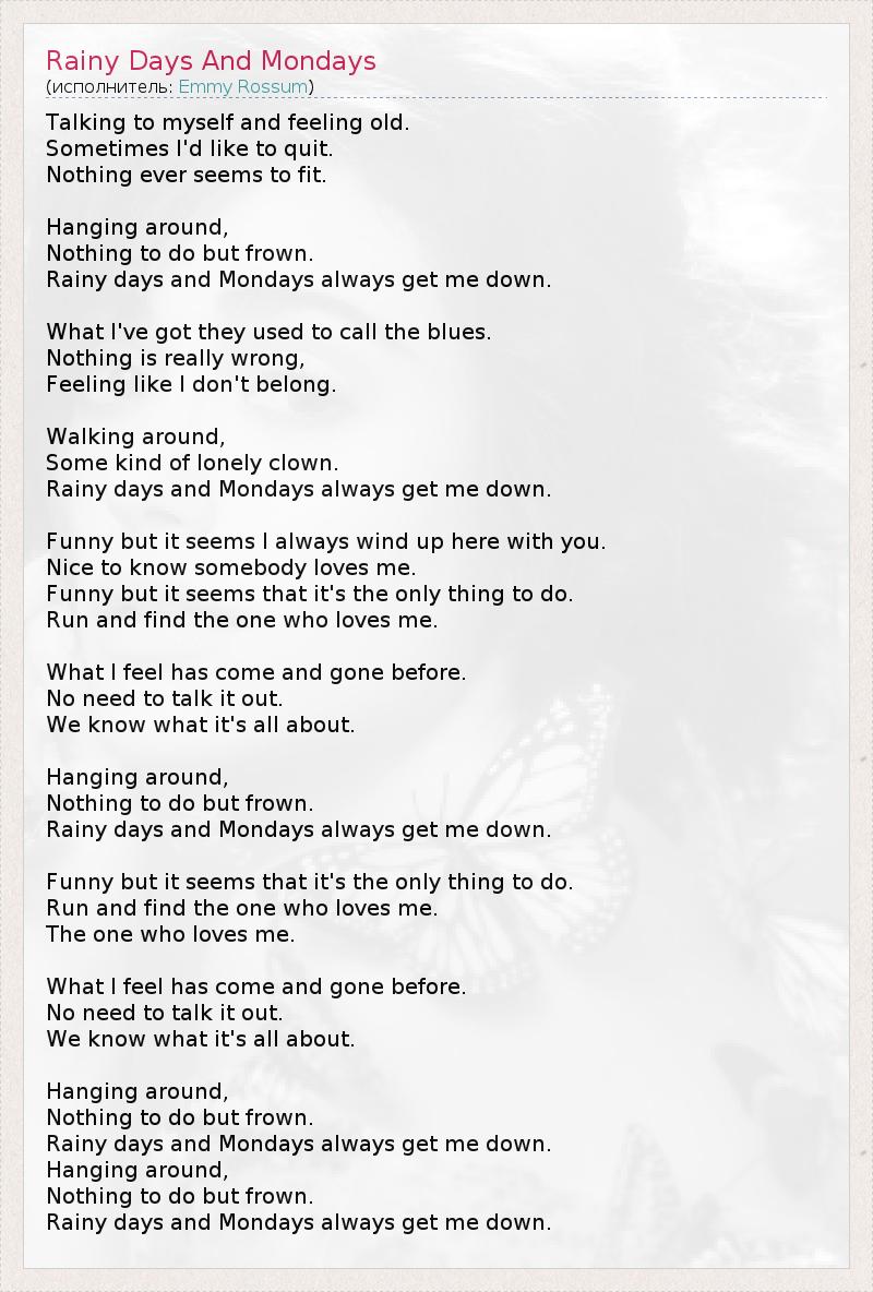 А как ты думаешь, о чем песня "Rainy Days And Mondays" ?