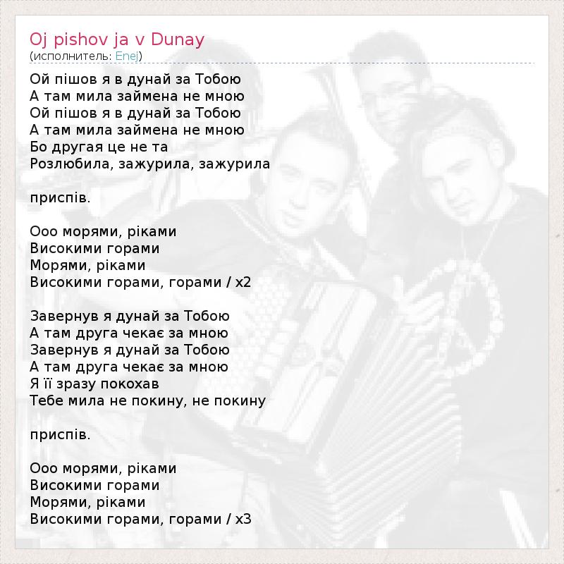 ГлавнаяИсполнителиEnejOj pishov ja v Dunay