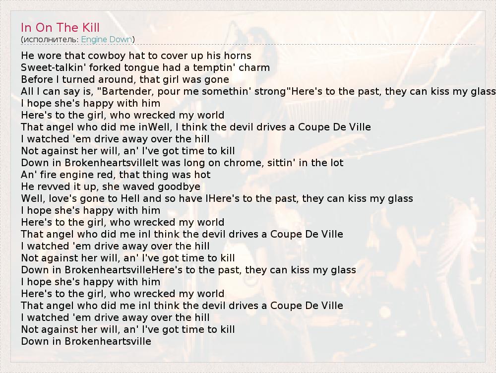 А как ты думаешь, о чем песня "In On The Kill" ?