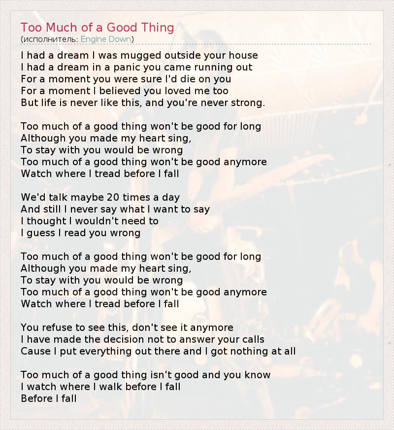А как ты думаешь, о чем песня "Too Much of a Good Thing" ?