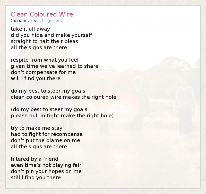 А как ты думаешь, о чем песня "Clean Coloured Wire" ?