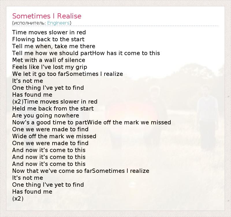 А как ты думаешь, о чем песня "Sometimes I Realise" ?
