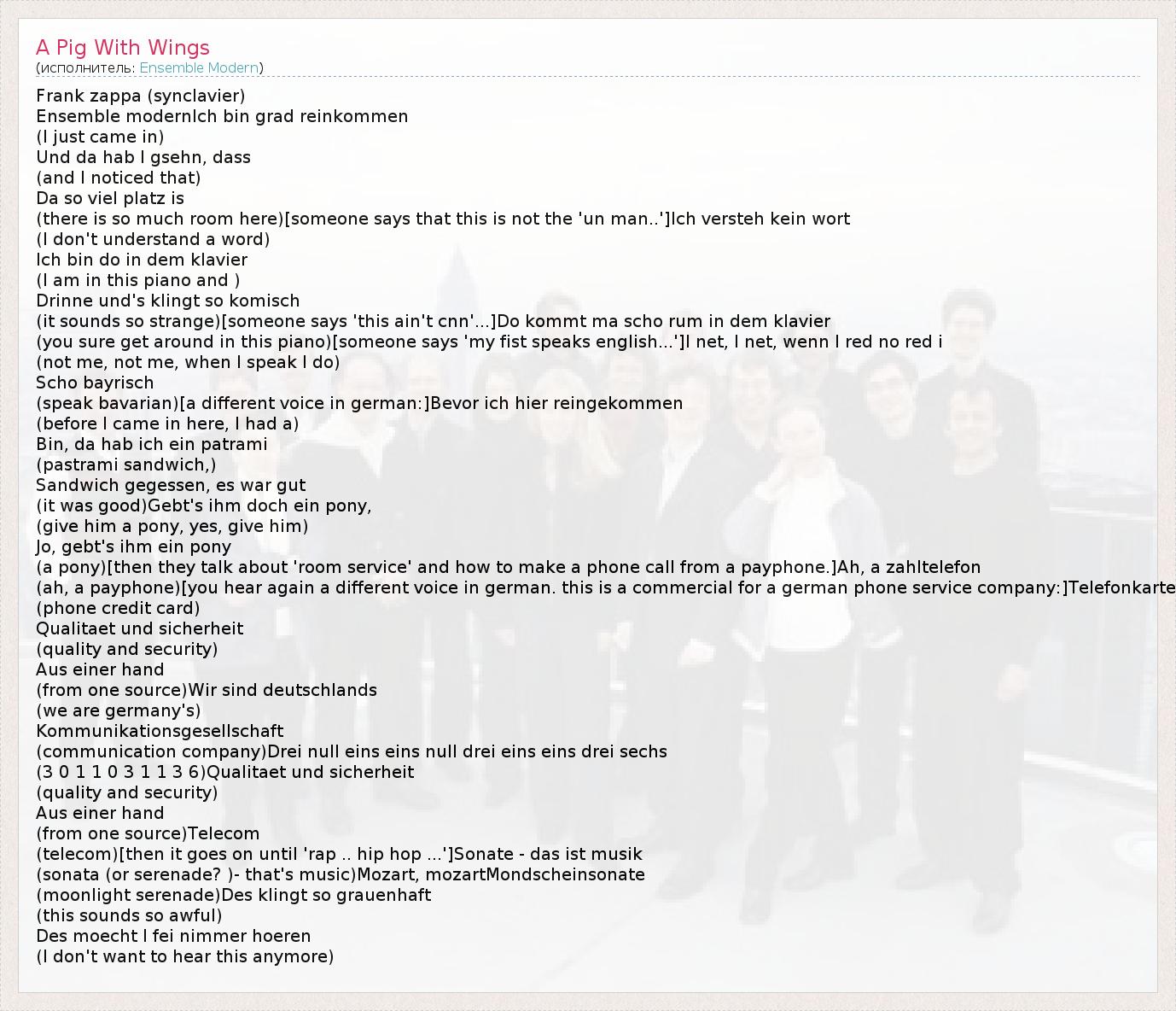А как ты думаешь, о чем песня "A Pig With Wings" ?