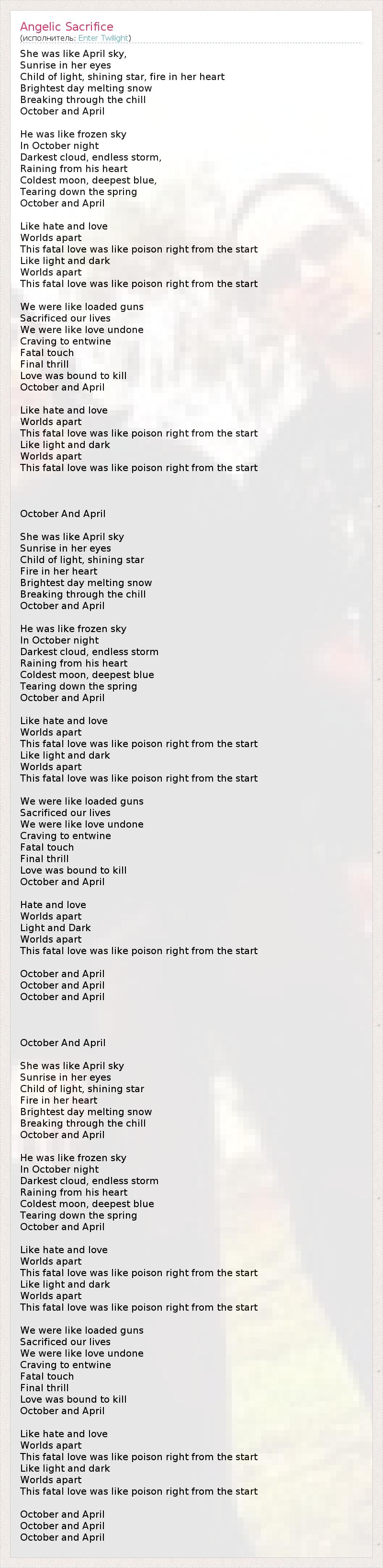 А как ты думаешь, о чем песня "Angelic Sacrifice" ?