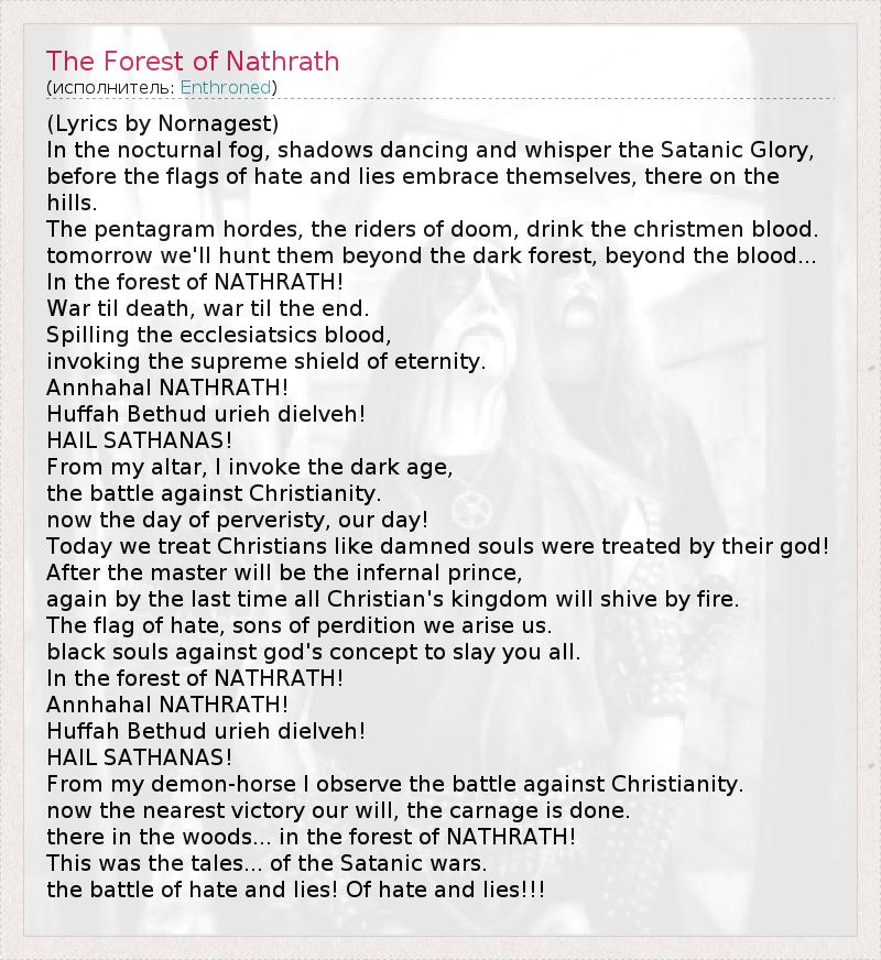 А как ты думаешь, о чем песня "The Forest of Nathrath" ?