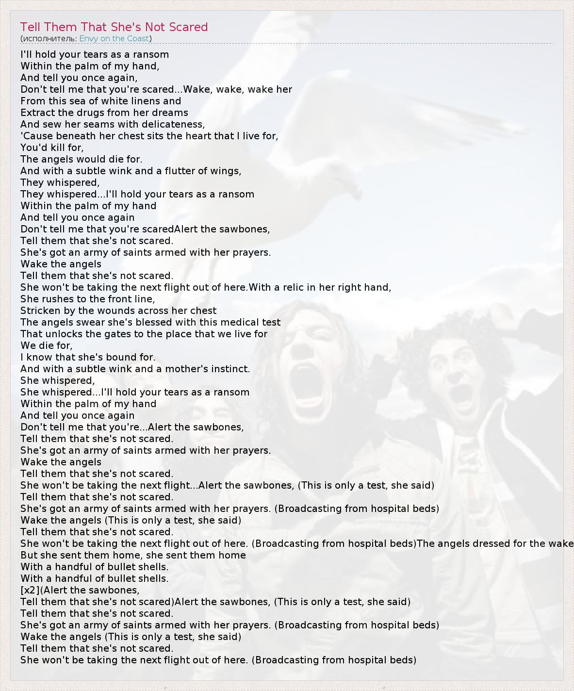 ГлавнаяИсполнителиEnvy on the CoastTell Them That She's Not Scared