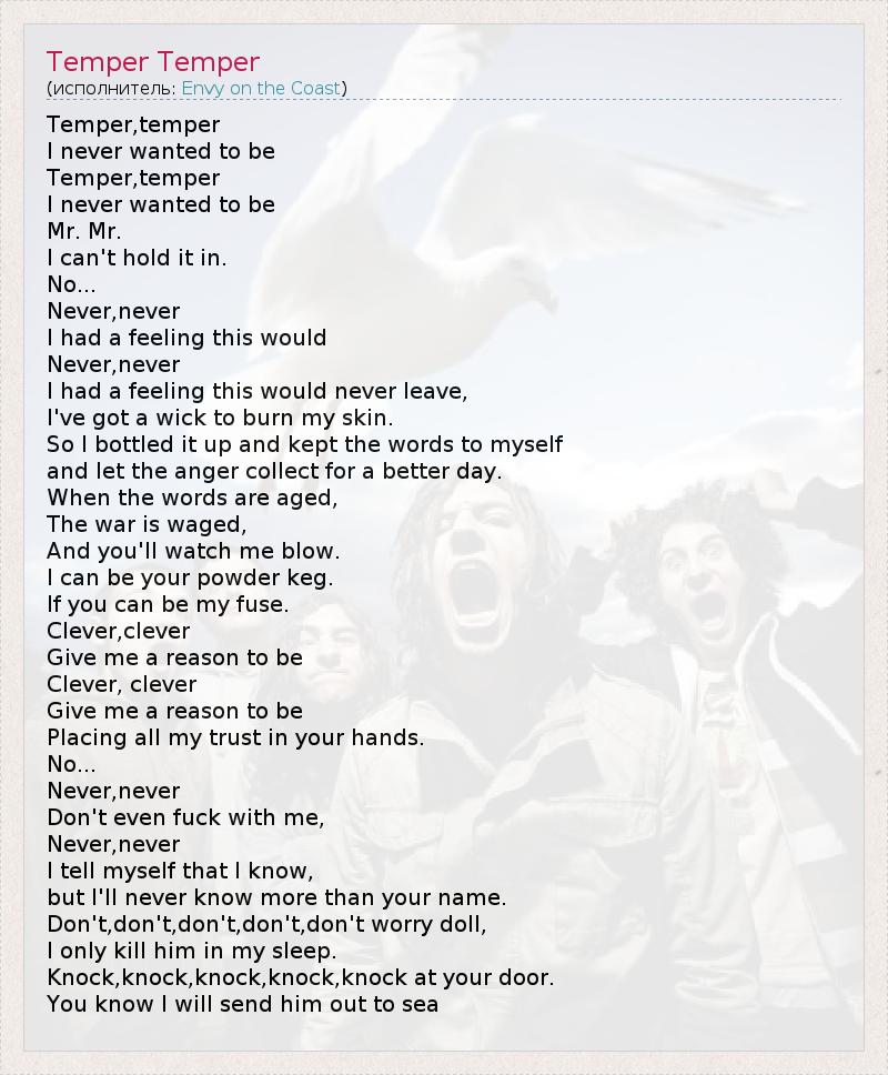 А как ты думаешь, о чем песня "Temper Temper" ?
