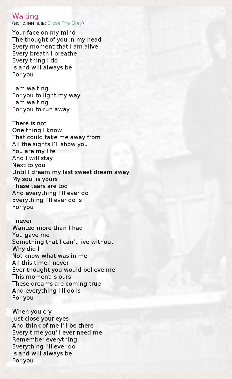 Your face on my mind The thought of you in my head Every moment that I am alive Every breath I breathe Every thing I do Is and will always be For you I am waiting For you to light my way I am waiting For you to run away There is not One thing I know That could take me away from All the sights I'll show you You are my life And I will stay Next to you Until I dream my last sweet dream away My soul is yours These tears are too And everything I'll ever do Everything I'll ever do is For you I never Wanted more than I had You gave me Something that I can't live without Why did I Not know what was in me All this time I never Ever thought you would believe me This moment is ours These dreams are coming true And everything I'll do is For you When you cry Just close your eyes And think of me I'll be there Every time you'll ever need me Remember everything Everything I'll ever do Is and will always be For you