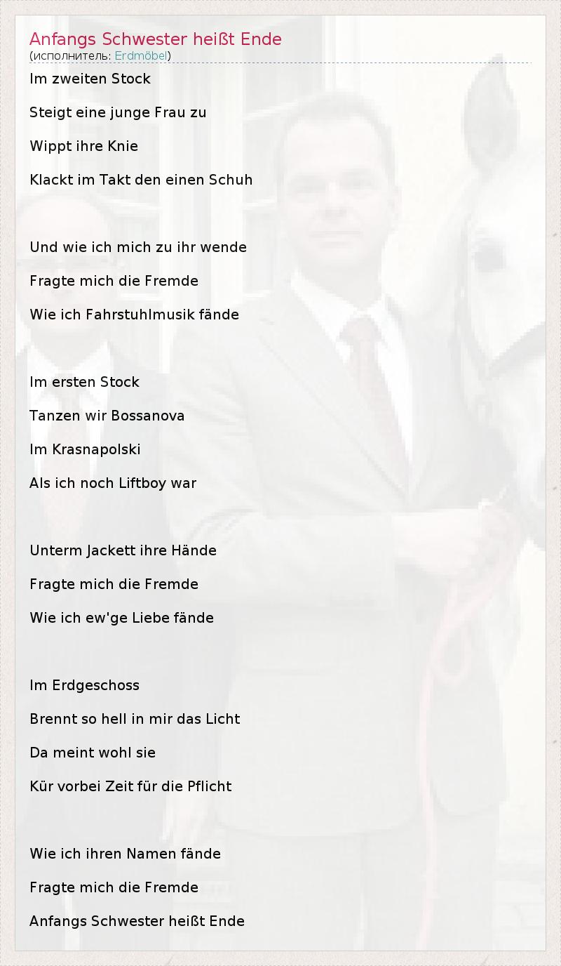 А как ты думаешь, о чем песня "Anfangs Schwester heißt Ende" ?