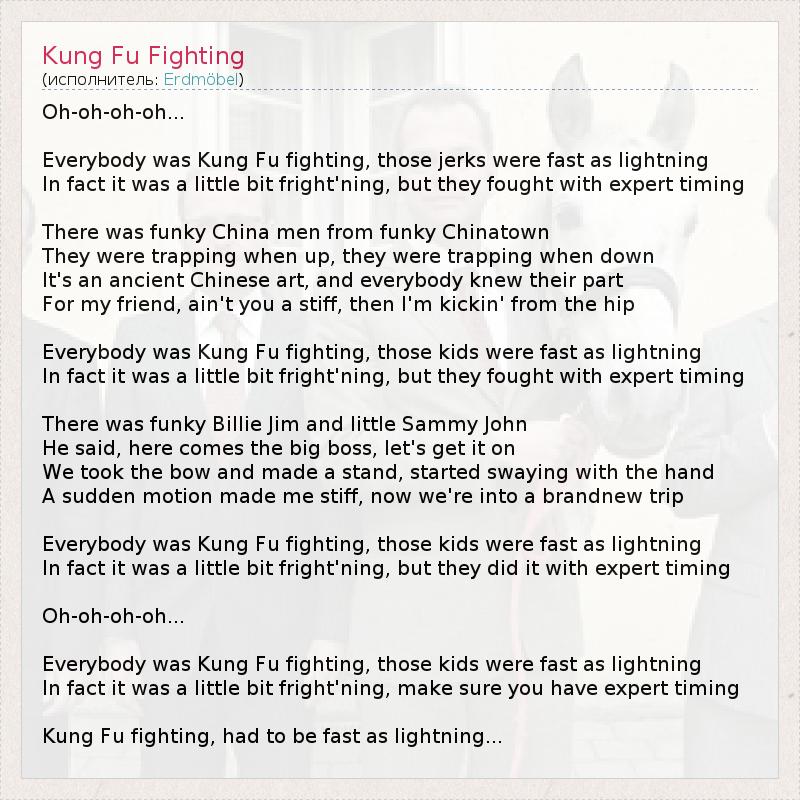 А как ты думаешь, о чем песня "Kung Fu Fighting" ?